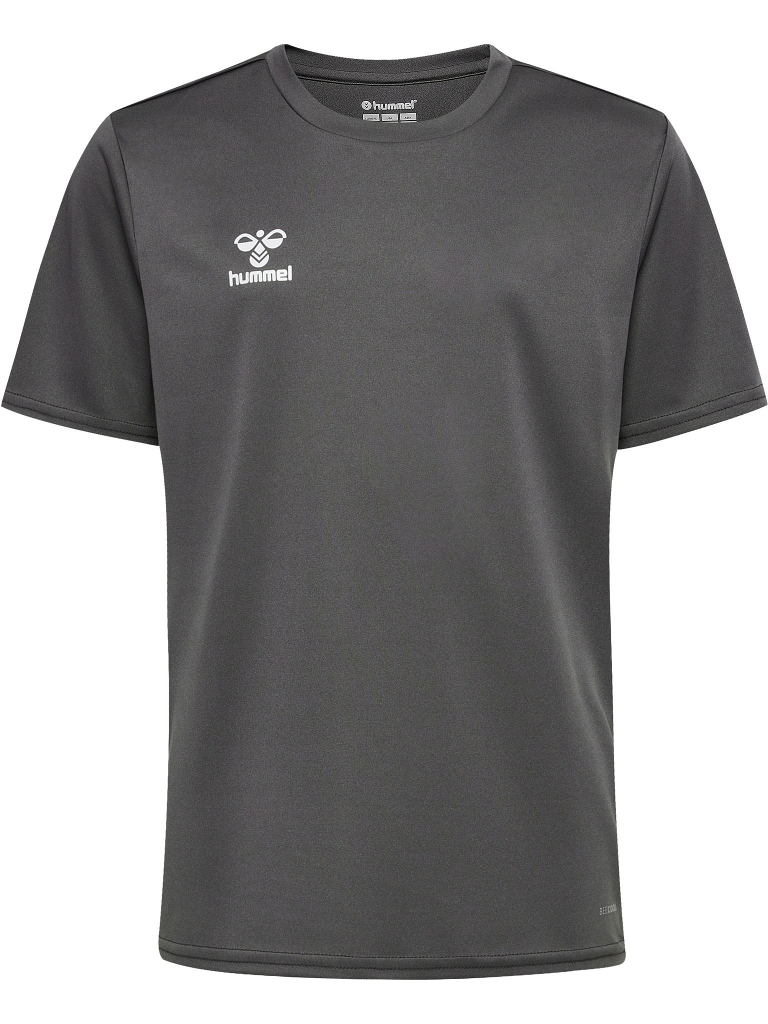 Laget i fleksibelt interlock-stoff med en glatt overflate, har hmlESSENTIAL JERSEY S/S KIDS pustende BEECOOL® teknologi med hurtigtørkende egenskaper for å hjelpe barna å holde seg kjølige og tørre under trening. Denne klassiske hummel t-skjorte-designen har korte ermer og en rund hals. Den kommer i en enkel og behagelig passform og er laget av resirkulert polyester, mens det trykte logoen på brystet gir en fin kontrast til toppen.
