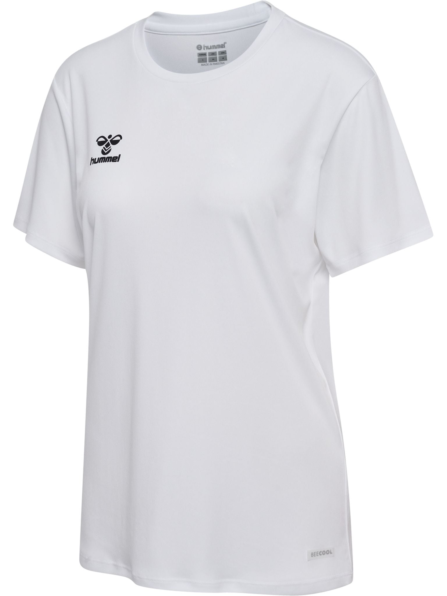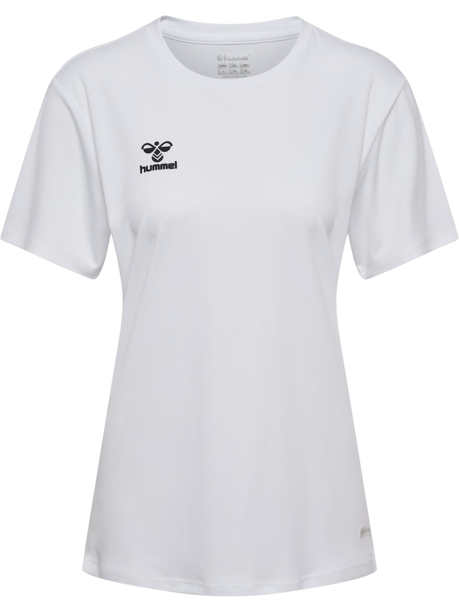 Laget i fleksibelt interlock-stoff med en glatt overflate, har hmlESSENTIAL JERSEY S/S WOMAN pustende BEECOOL® teknologi med hurtigtørkende egenskaper. Denne klassiske hummel t-skjorten har korte ermer og en rund hals. Den kommer i en normal passform og er laget av resirkulert polyester, mens det trykte logoen på brystet gir en fin kontrast til toppen.