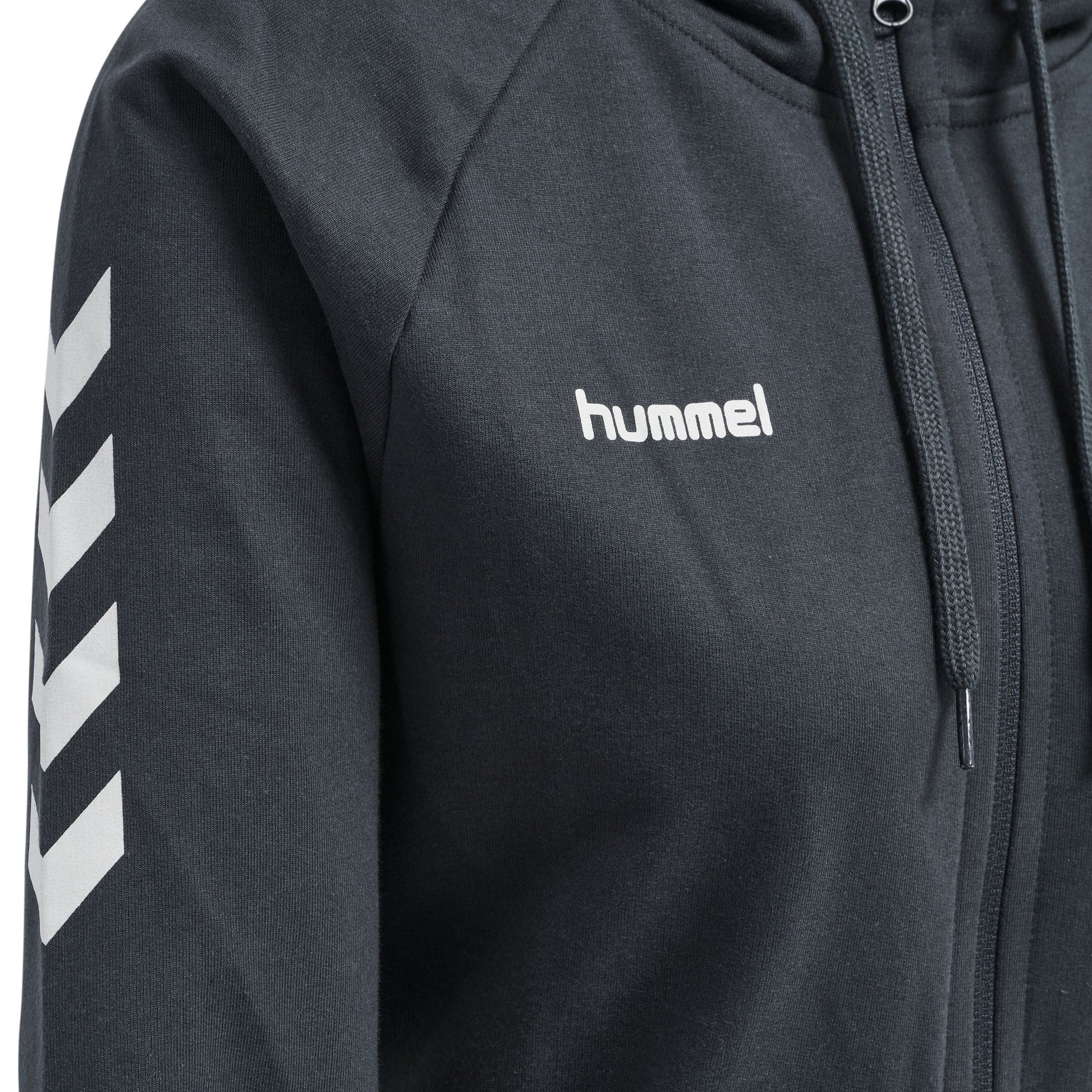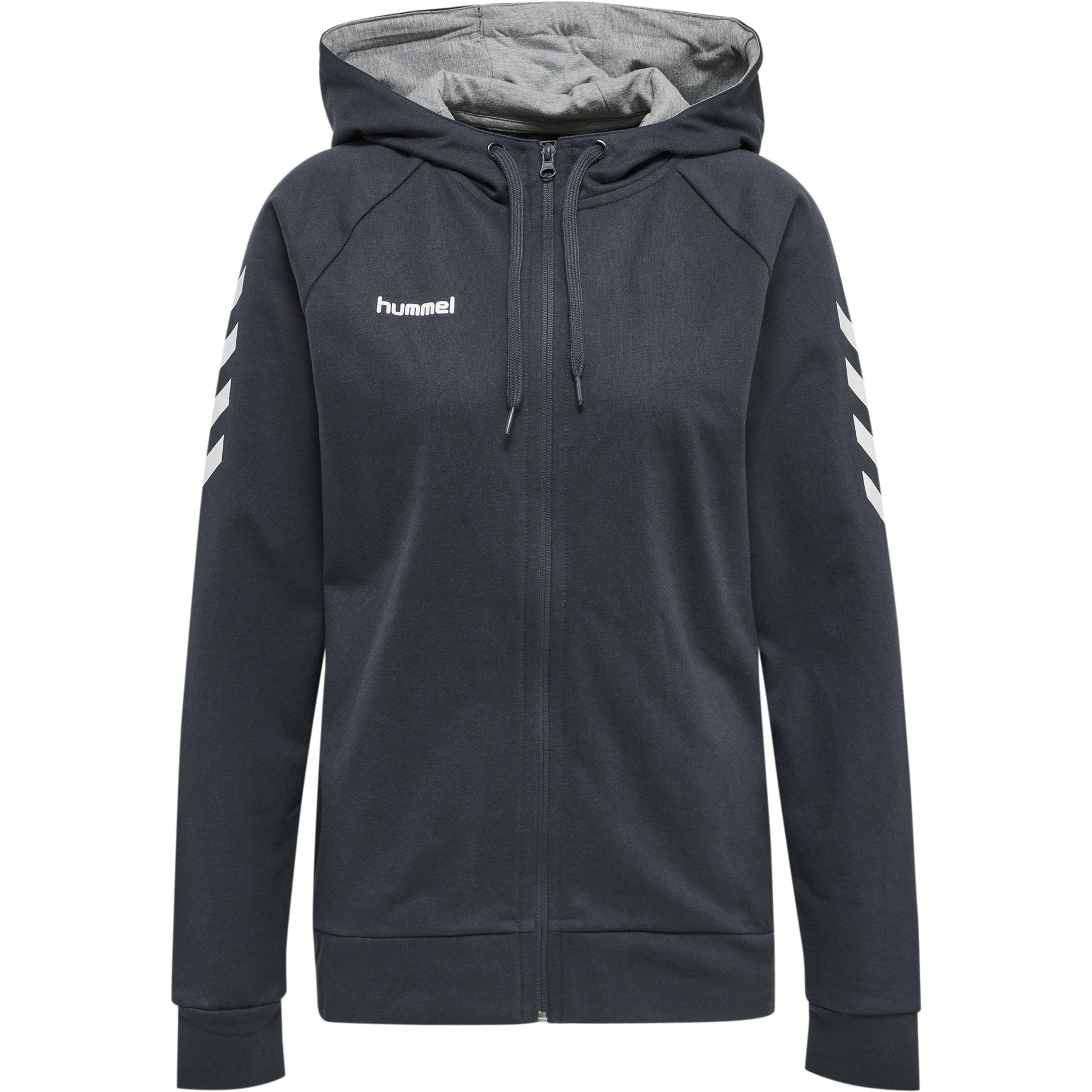 Denne stilige HMLGO COTTON ZIP HOODIE WOMAN har alt - en rullekrage med snøring, en hel lengde glidelås, og sporty skulder-chevron, samt et subtilt trykket hummel® logo.