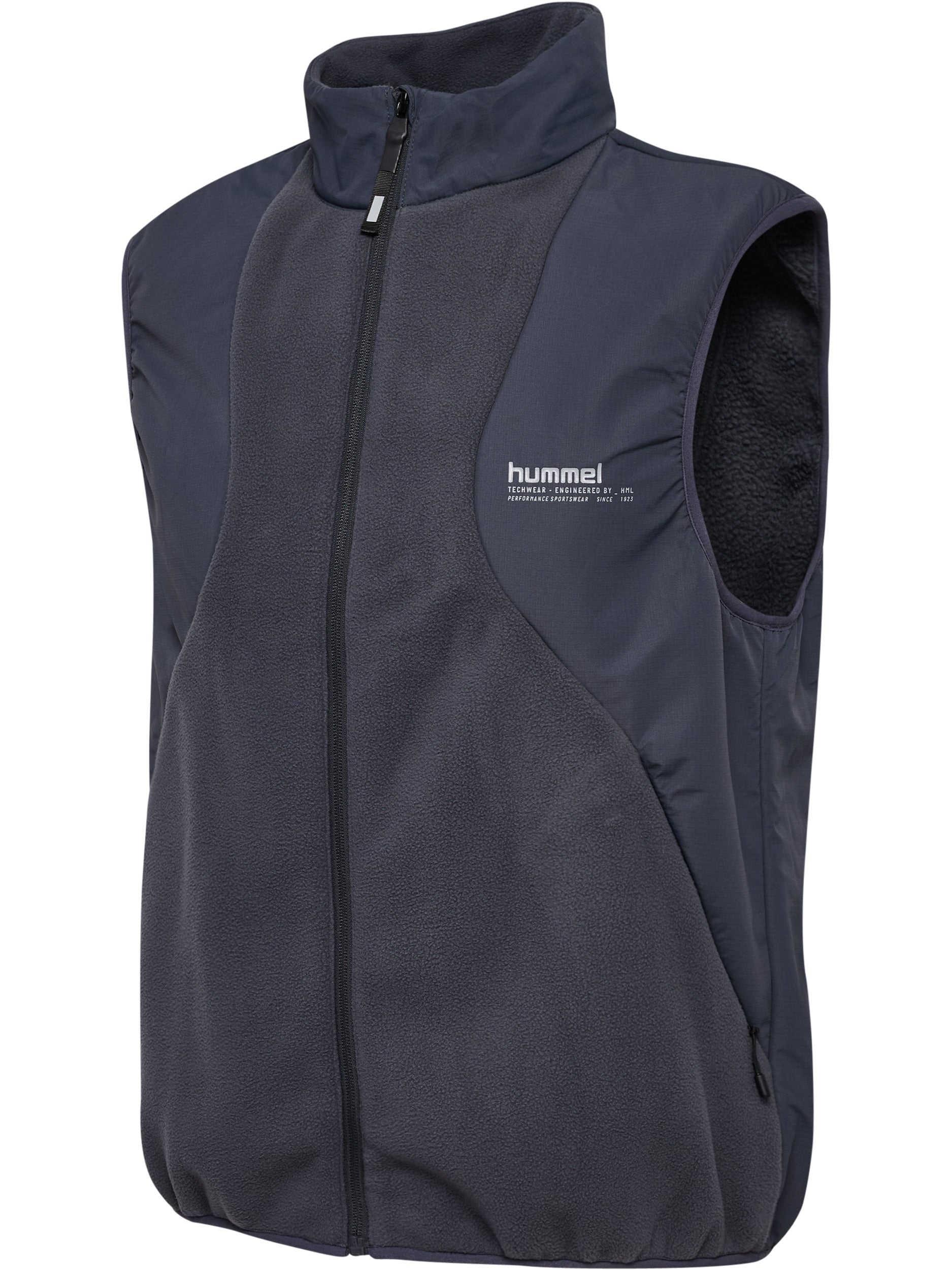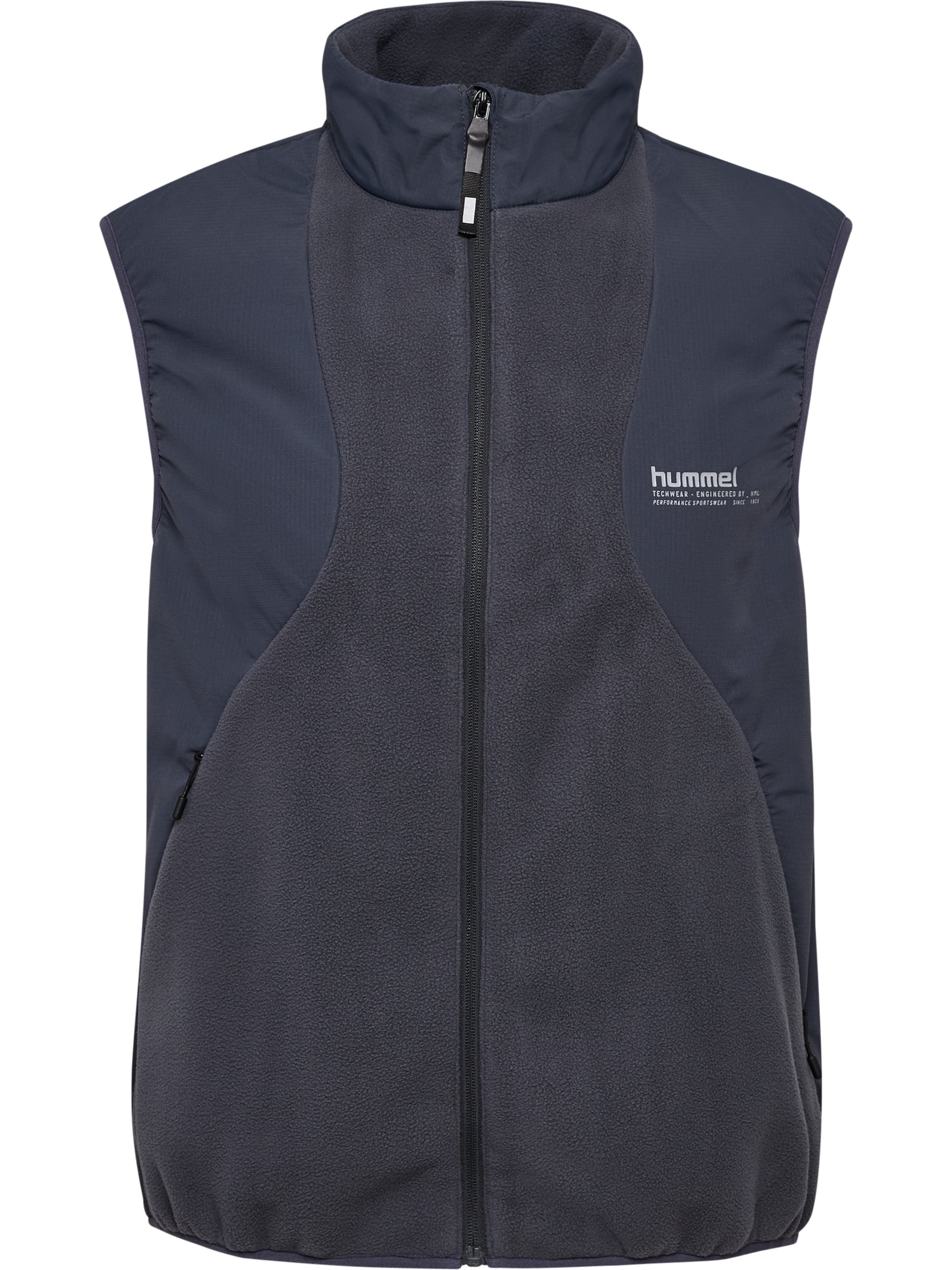 hmlHYBRID FLEECE VEST kombinerer varme og slitestyrke med en blanding av fleece- og vevd stoff. Vesten har praktiske lommer med glidelås og elastiske kanter som sikrer en god passform.