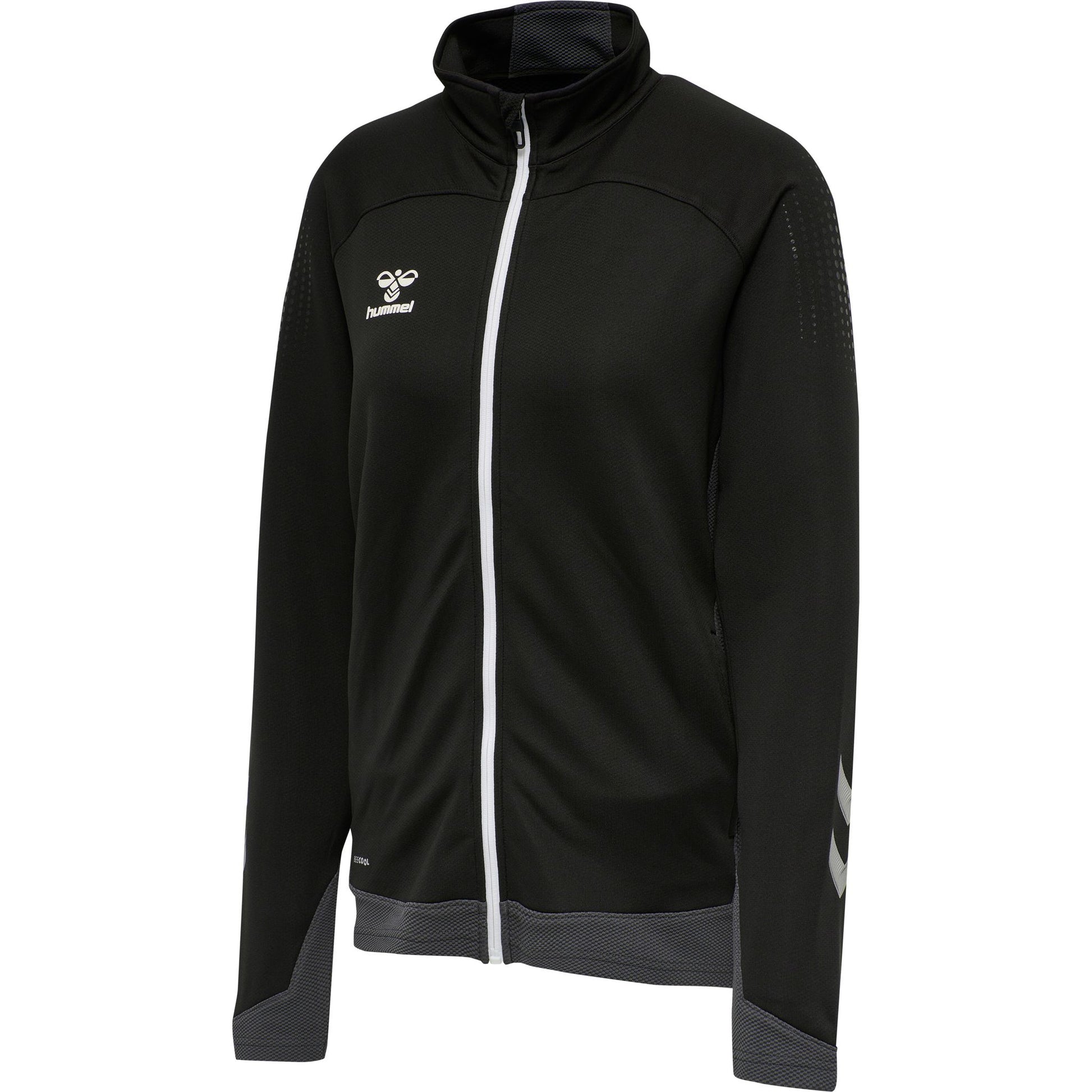 Denne hmlLEAD WOMEN POLY ZIP JAKKEN er laget av lett svette-stoff med ekstra stretch, slik at du kan bevege deg både på og utenfor banen. Denne hummel® jakken har en hel glidelås foran med beskyttende glidelås-garasje, samt to glidelåslommer på sidene. Kontrastpanelene på ryggpartiet og sidene gir en klassisk sportsdesign.