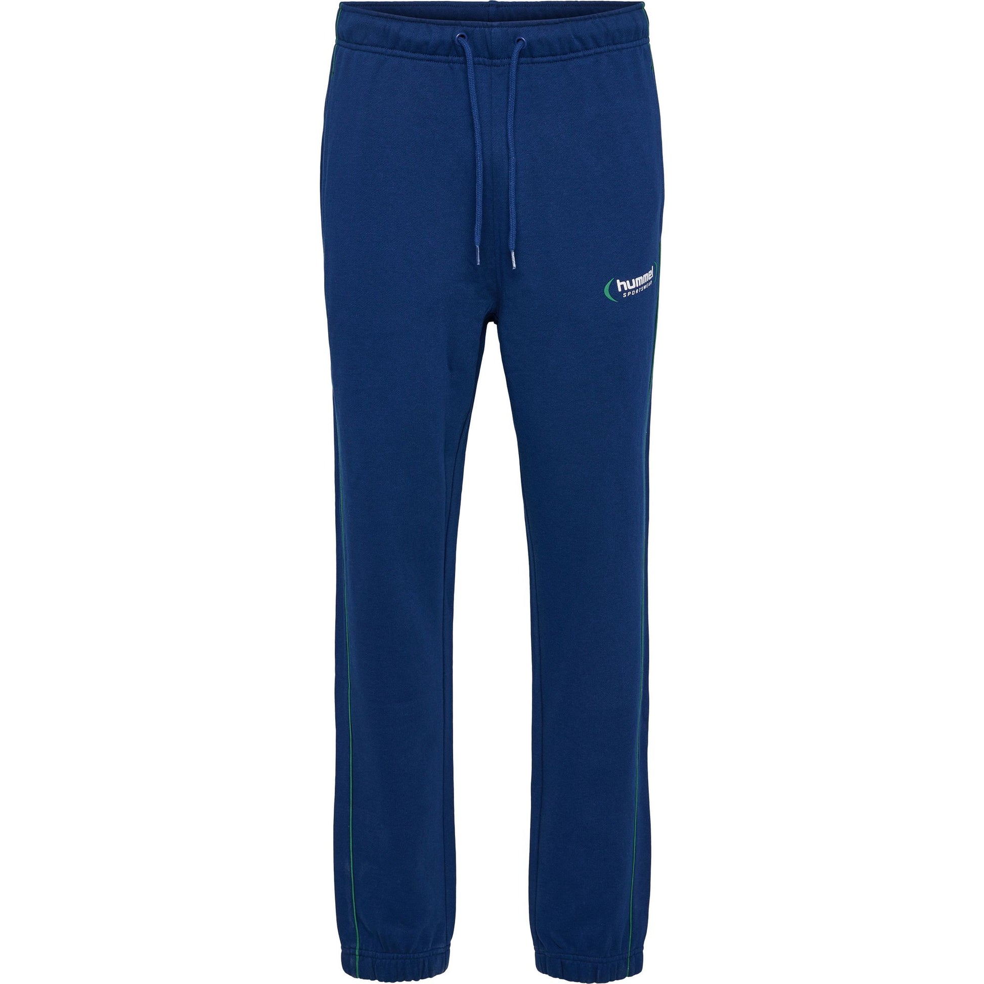 Med et strømlinjeformet og sporty design, har hmlLGC RYAN SWEATPANTS en utrolig myk sweatstoffkonstruksjon for full komfort, enten du trener, går på gaten eller slapper av hjemme. Disse allsidige hummel® sweatpantsene har en justerbar snor i livet og sidelommer, i et design som inkluderer piping ved sømmene og et trykt logo på benet.