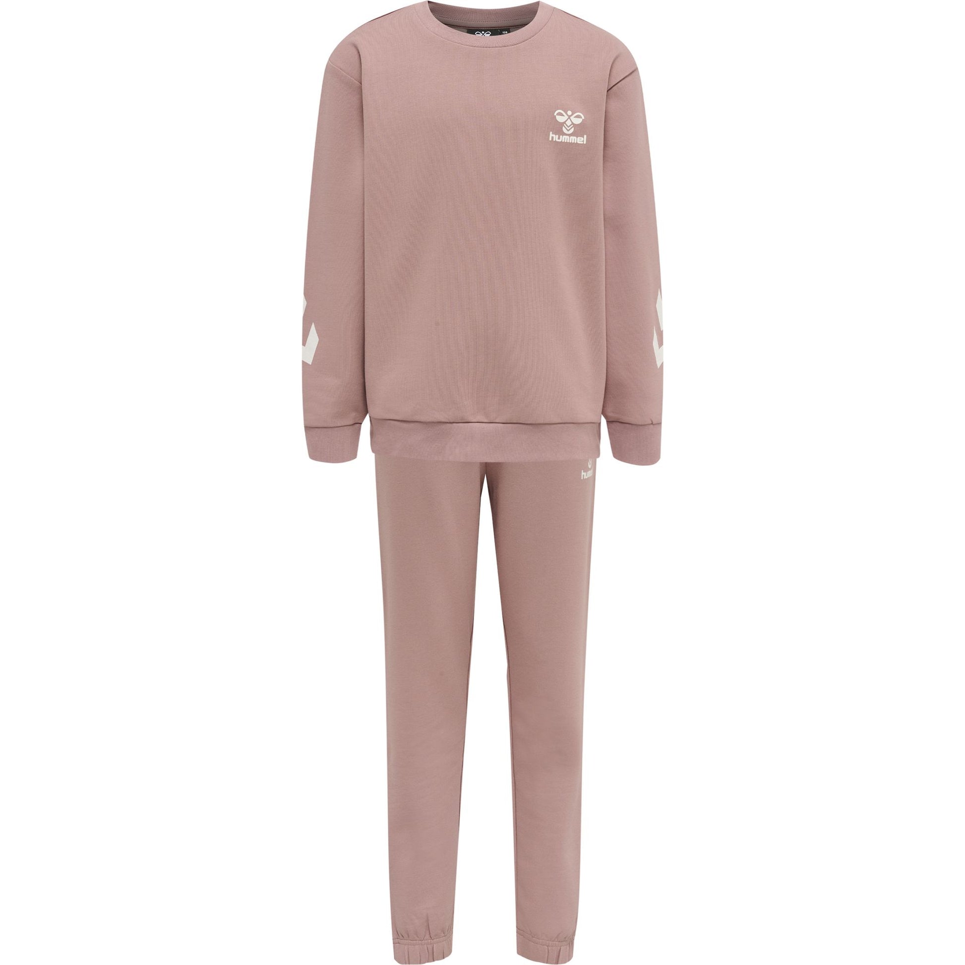 hmlVENTI TRACKSUIT er laget av mykt stretch sweatstoff spunnet av økologisk bomull og resirkulert polyester. hummel® settet inneholder en genser med rund hals og lange joggebukser med elastiske mansjetter. Det er fullført med et Bumblebee® logo-trykk på toppen og buksene, og chevron-mønster nedover ermene.