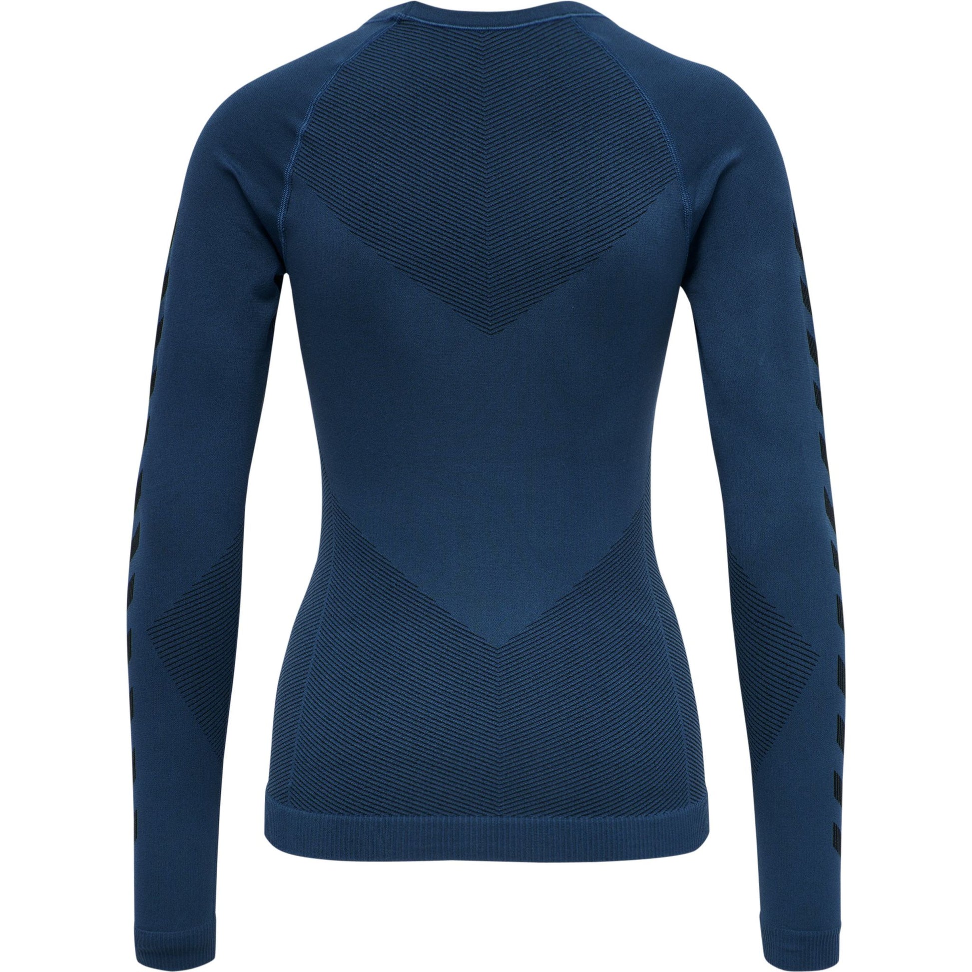 Den super-stretchy, sømløse designet til den kroppsnære HUMMEL FIRST SEAMLESS JERSEY L/S WOMAN tilbyr det ultimate innen langermede, strømlinjeformede komfort og har en strikket hummel® logo og arm-chevroner.
